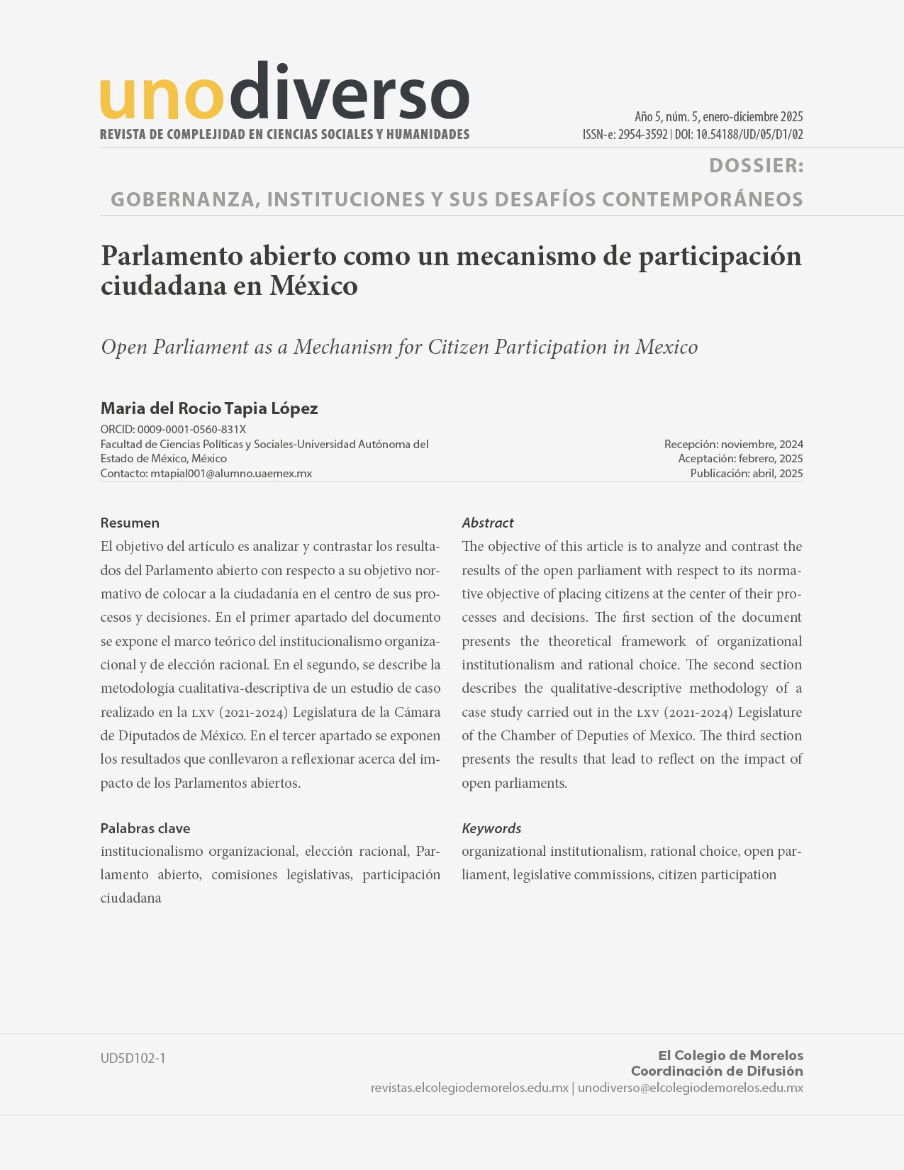 unodiverso es una revista académica electrónica de publicación continua, arbitrada y de Acceso Abierto; editada por El Colegio de Morelos a través de su Coordinación de Difusión. Publica artículos académicos y reseñas críticas de libros en materia de Ciencias Sociales, Humanidades y Artes, dirigidos a académicos, profesionales y estudiantes de dichas líneas temáticas.